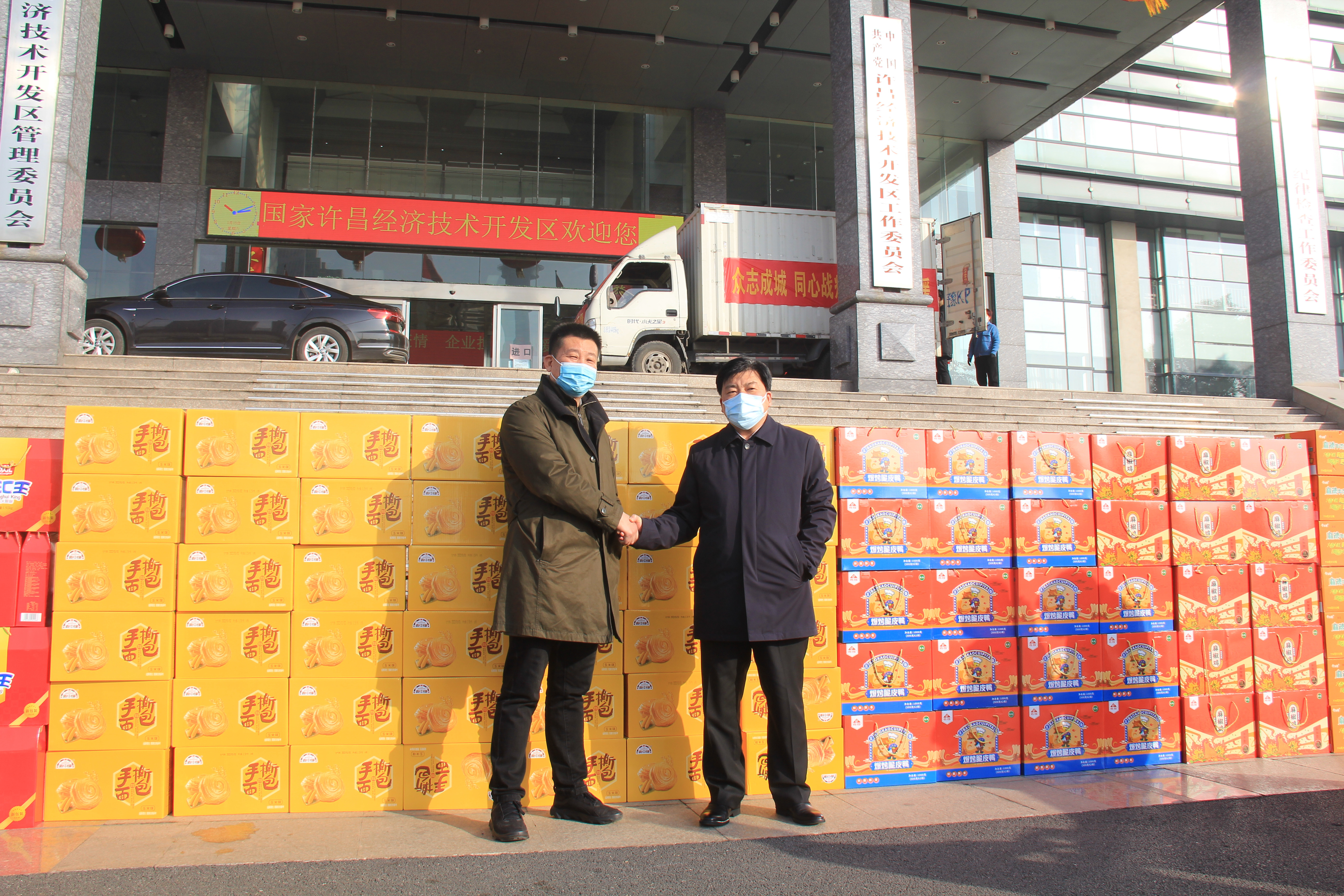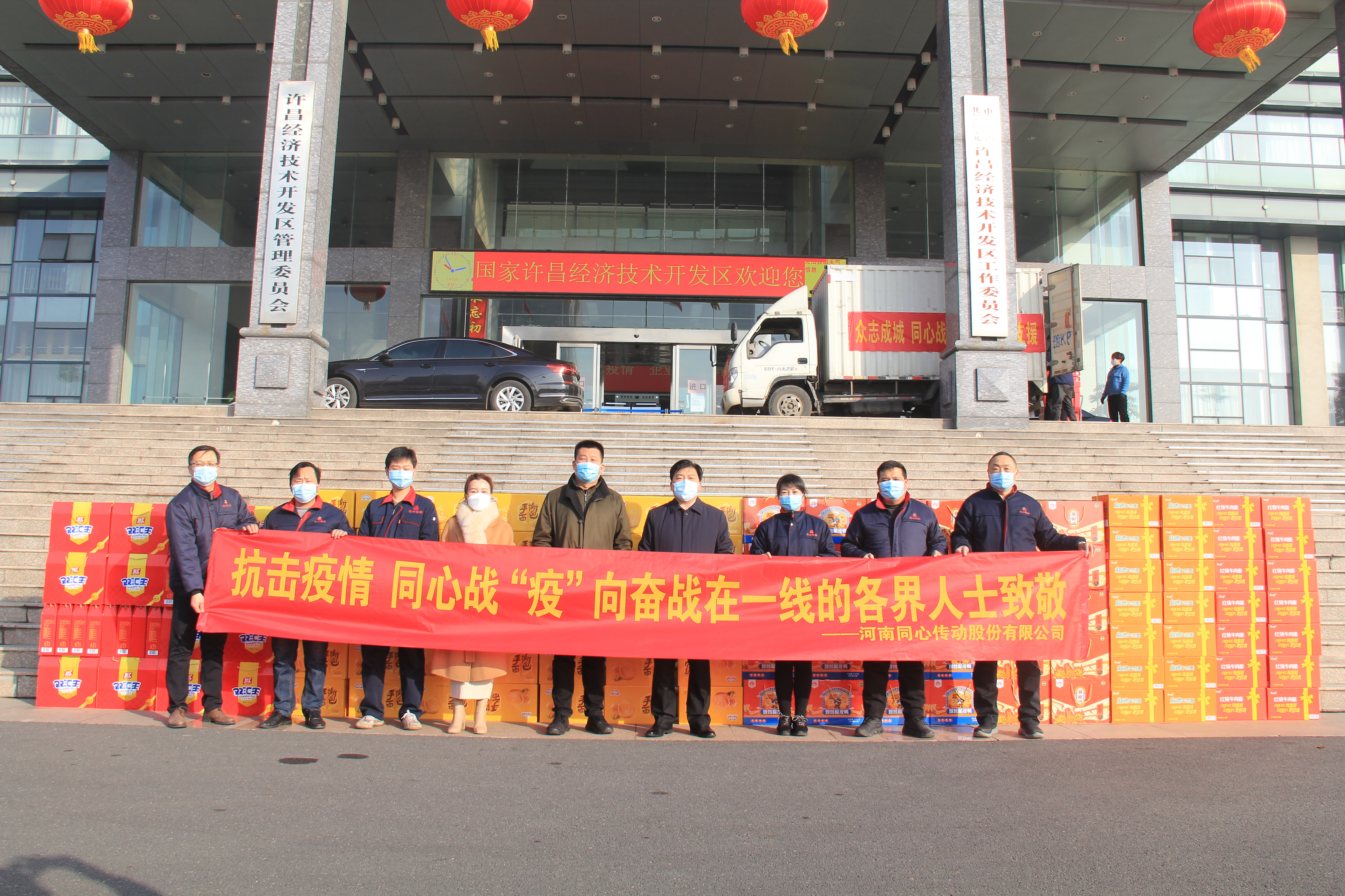 天寒人心暖,捐赠显真情!1月15日上午,为助力疫情防控,打赢这场没有硝烟的的疫情防控阻击战,河南MGM澳门传动股份有限公司董事长陈红凯携团队,众志成城,共克时艰,用实际行动向开发区管委会捐赠价值10万余元的应急生活物资,向奋战在抗疫一线的各界人士致敬!
